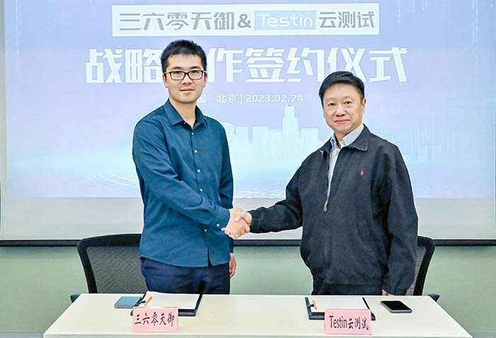 在移動應用快速發展的今天,應用安全已經成為移動互聯網的第一焦點。2022年三六零天御加固移動應用數20萬+,在人們對應用安全愈加重視的同時,對兼容性問題的考量也成為選購加固產品的重要因素?;诖耍闾煊cTestin云測試正式達成戰略關系,以雙方業務發展為基礎,展開移動應用方向的安全加固、兼容測試方面的合作,一起探索網信安全新形勢下新的發展機遇,在安全市場聯合拓展、產品服務聯合打造、能力體系協同建設等建立更緊密的合作關系,共同支持我國網信安全事業的蓬勃發展。
