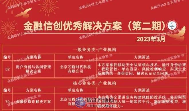近日,由中國人民銀行領(lǐng)導(dǎo),中國金融電子化集團有限公司牽頭組建的金融信創(chuàng)生態(tài)實驗室正式發(fā)布“金融信創(chuàng)優(yōu)秀解決方案(第二期)”評選結(jié)果。芯盾時代的用戶身份與訪問控制解決方案和金融反欺詐解決方案經(jīng)多環(huán)節(jié)、多輪次審核甄選后,從眾多方案中脫穎而出,分別入選“一般業(yè)務(wù)類”和“核心業(yè)務(wù)類”優(yōu)秀解決方案。芯盾時代在金融信創(chuàng)領(lǐng)域的產(chǎn)品方案與服務(wù)能力再次獲得專業(yè)機構(gòu)和業(yè)界客戶的高度認可。