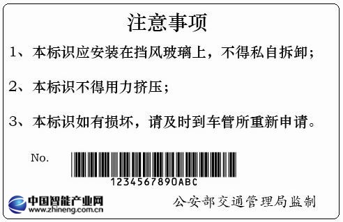 汽車電子標(biāo)識(shí)(Electronic Registration Identification of the motor vehicle,簡(jiǎn)稱:ERI)定義為:嵌有超高頻無(wú)線射頻識(shí)別(Radio Frequency Identification,簡(jiǎn)稱:RFID)芯片并存儲(chǔ)汽車身份數(shù)據(jù)的電子信息識(shí)別載體。又稱“電子車牌”,是車輛的“二代身份證”。具有信息量大、識(shí)讀速度快、識(shí)讀距離遠(yuǎn)等優(yōu)點(diǎn),可不停車、自由流情況下識(shí)讀車輛標(biāo)簽中的信息,也可實(shí)現(xiàn)交通信息的分類采集、精確化采集、海量采集以及動(dòng)態(tài)采集,有效彌補(bǔ)傳統(tǒng)交通技術(shù)監(jiān)控設(shè)備的不足。