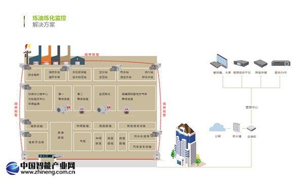 大華股份綜合安防監控方案,對煉油廠內的裝置區、倉儲區、灌裝區等高危區域進行重點數據、視頻綜合安全監控,對廠區、辦公區實現可視化管理及人員車輛管理。精準監控跑、冒、滴、漏等安全隱患,有效預防降低蒸汽、熱油燙傷和酸堿灼傷事故,為生產管理、重點危化品監管、設備檢修、事故處理、應急指揮提供有力技術保障。