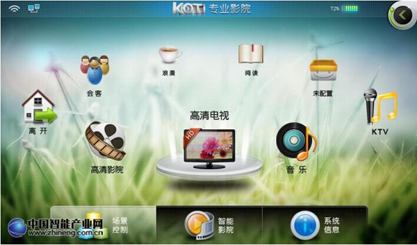 KOTI 專業(yè)影音控制系統(tǒng)是我公司研發(fā)設(shè)計(jì)的一套面向家庭用戶對(duì)眾多影音設(shè)備、燈光以及窗簾等設(shè)備實(shí)現(xiàn)智能集中化控制的系統(tǒng)。它主要由“專業(yè)影院系統(tǒng)主機(jī)”和“專業(yè)影院系統(tǒng)控制器”組成。該系統(tǒng)允許連接 8 個(gè)紅外設(shè)備和 6 個(gè) RS-232 設(shè)備,實(shí)現(xiàn)智能化集中影音控制;同時(shí)實(shí)現(xiàn)對(duì) 50 路燈光、窗簾、插座、空調(diào)等設(shè)備的智能控制;可自定義場(chǎng)景控制,實(shí)現(xiàn)一鍵式智能控制,充分滿足家庭視聽室的需求。